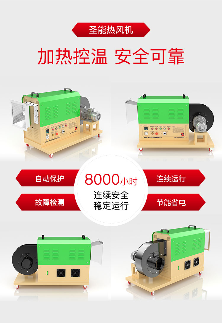 風(fēng)量型熱風(fēng)機(jī)主要由空氣加熱器和離心風(fēng)機(jī)組成。空氣加熱器加熱產(chǎn)熱散熱,由離心風(fēng)機(jī)將熱量輸出,從而調(diào)節(jié)空間溫度,風(fēng)量型熱風(fēng)機(jī)中加熱元件由2080鎳鉻絲加工成螺旋導(dǎo)管組成,從而發(fā)熱快、溫度效果好、工作風(fēng)量大壓力較低。根據(jù)使用場所可分為:家用風(fēng)量型熱風(fēng)機(jī)和農(nóng)業(yè)用風(fēng)量型熱風(fēng)機(jī)。從而家用和農(nóng)業(yè)用風(fēng)量型熱風(fēng)機(jī)需根據(jù)客戶使用情況來進(jìn)行風(fēng)機(jī)和加熱功率的配比,望請客戶采購時將現(xiàn)場工況詳細(xì)說明。