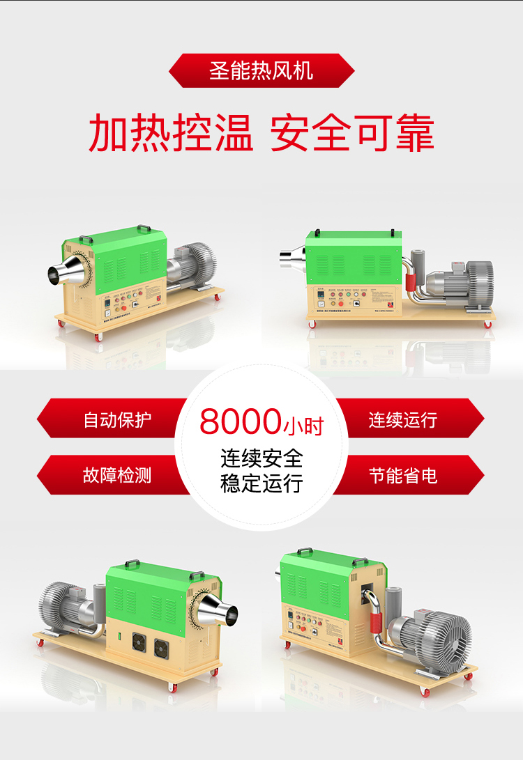本產品風量大、風壓高、控制精確,適用于各行業的加熱、老化、固化、熔接、干燥、升溫及土建筑工上的水泥養護等工序使用,是熱風輸送爐、干燥爐、烘箱、烘房、烘道、印刷PS干燥、鑄造行業砂鍋干燥、熱風收縮機械、封裝機械、容器內部干燥/升溫、管道送風、印刷制品油墨瞬間干燥、橡膠制品加熱升溫、材料保溫等行業最佳產品,有效的提高產品質量及效率,是現代工業熱源升級換代的首選加熱產品。